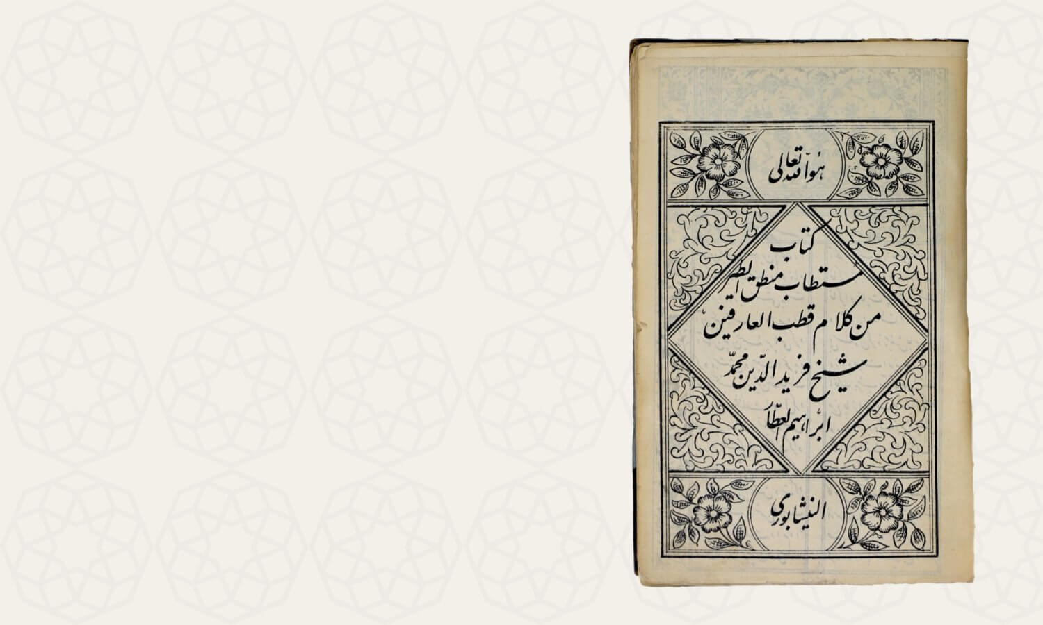 This lithograph edition of Manṭiq al-Ṭayr (the Conference of the Birds) was published in Iran in 1356/1937 and has come to the Aga Khan Library as part of a donation from Dr Farhad Daftary.